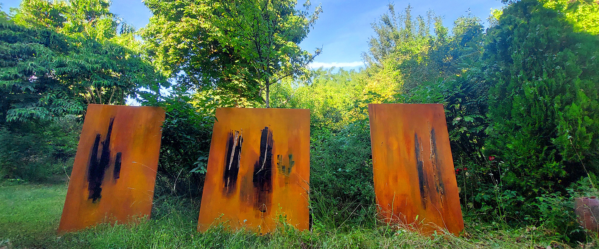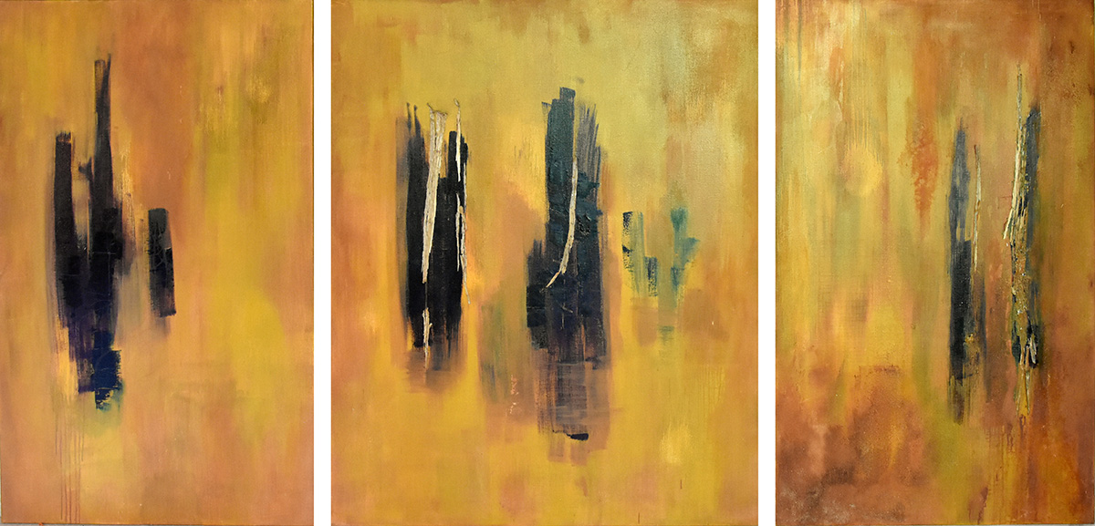 Triptyque – huile sur toile, collage d’écorces, sables, poudre de marbre
