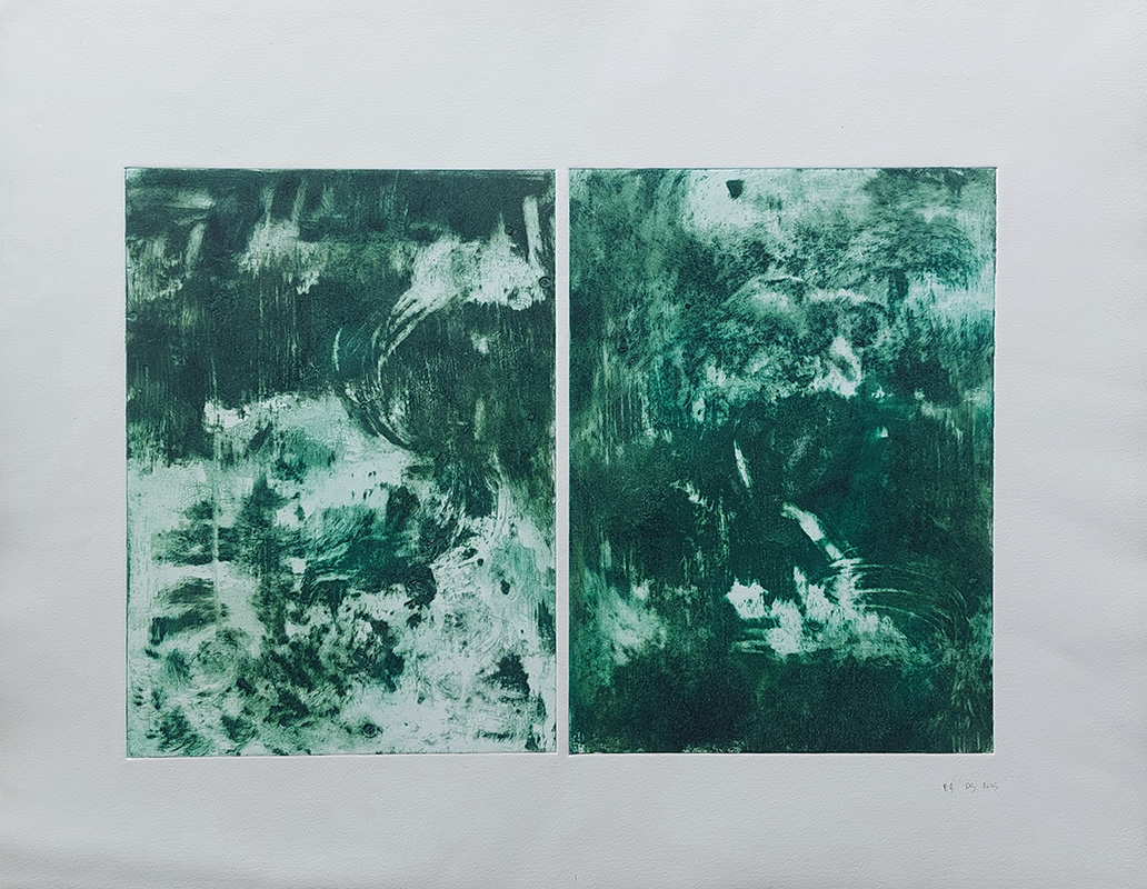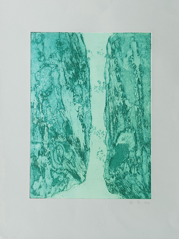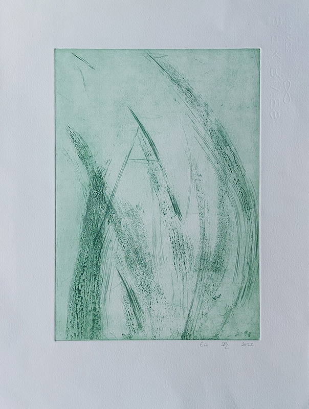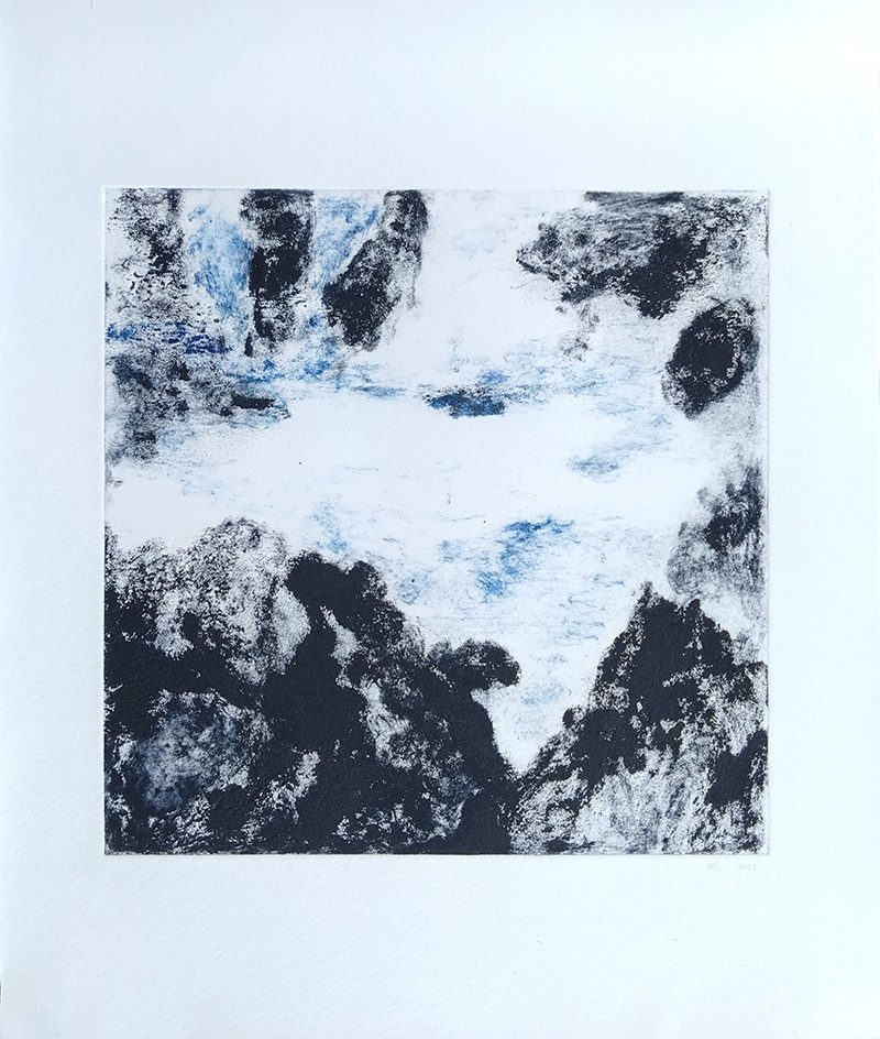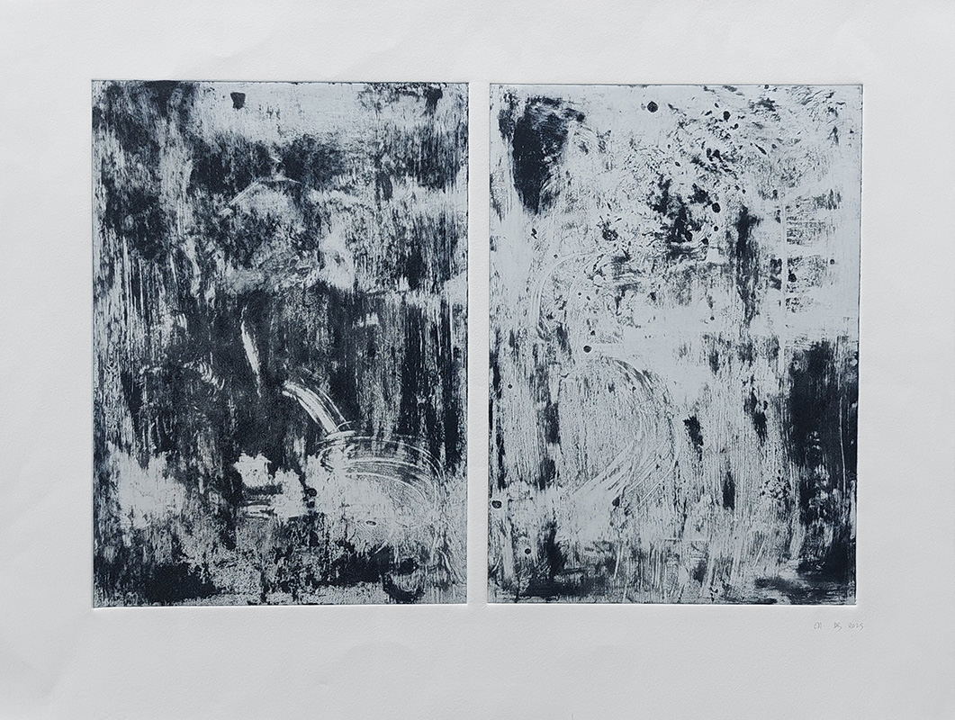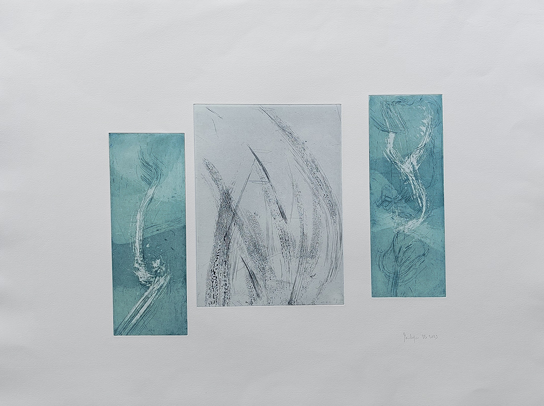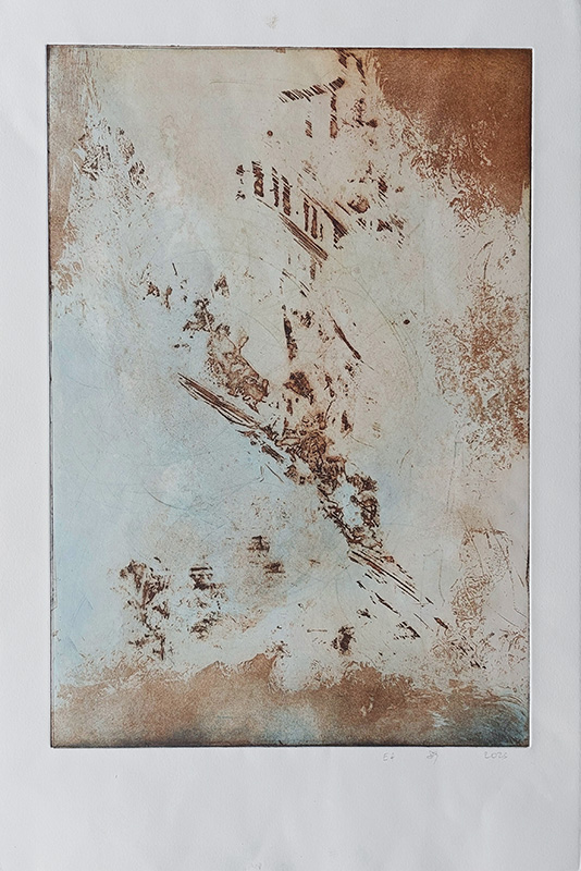 Mes gravures se déclinent sur deux supports;  sur cuivre (aquatinte) et sur plexiglas (carborundum).
