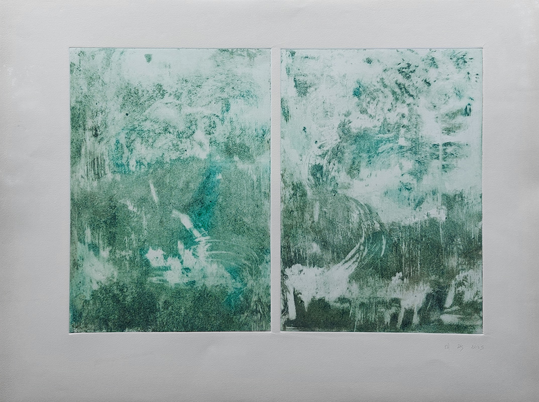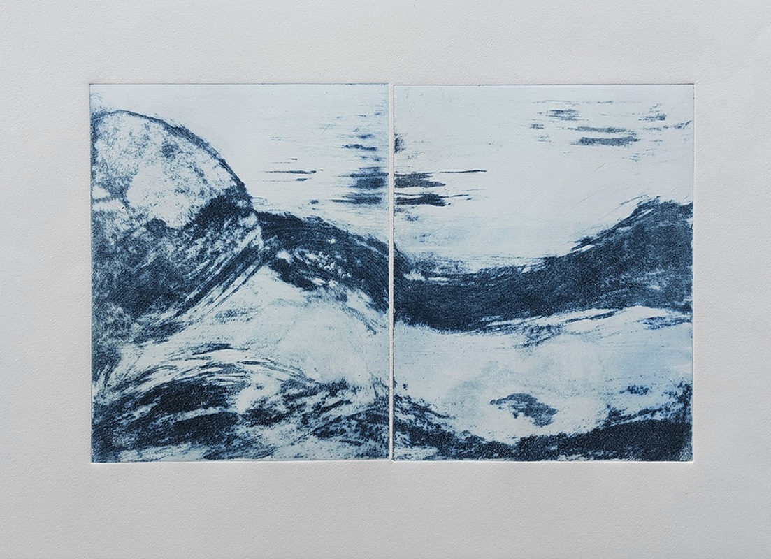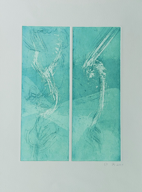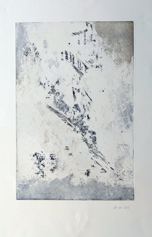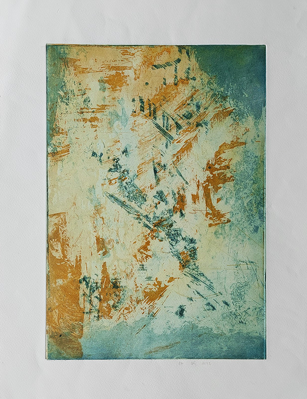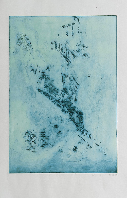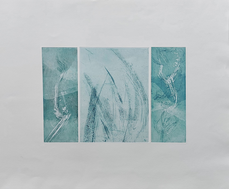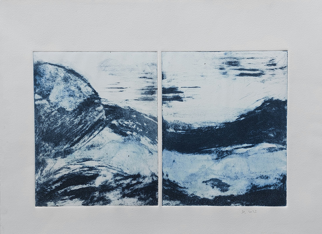 Mes gravures se déclinent sur deux supports;  sur cuivre (aquatinte) et sur plexiglas (carborundum).
