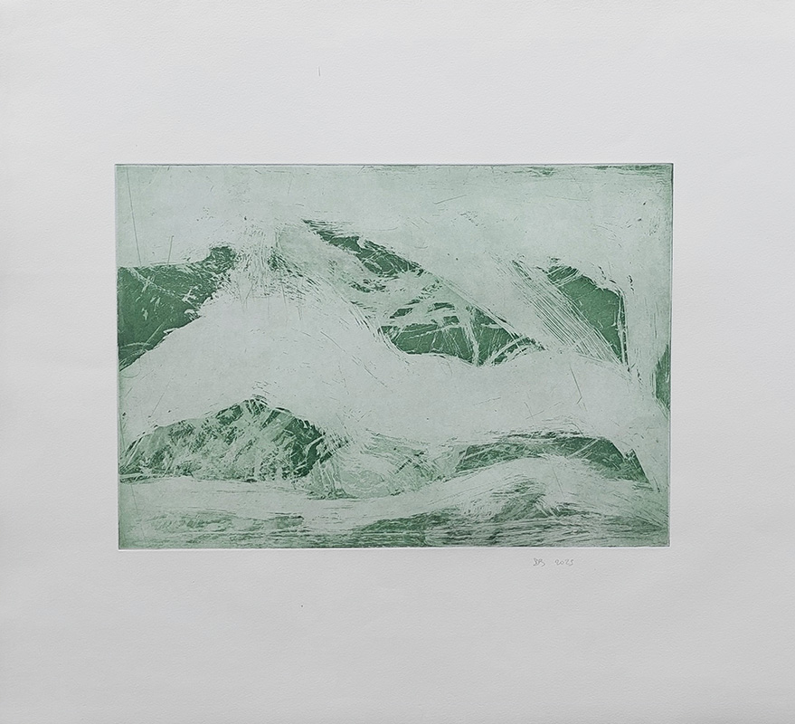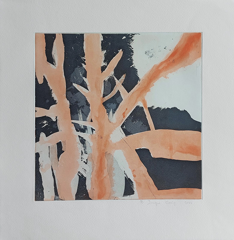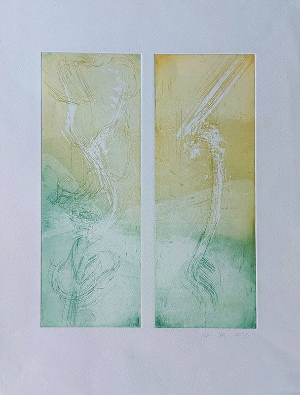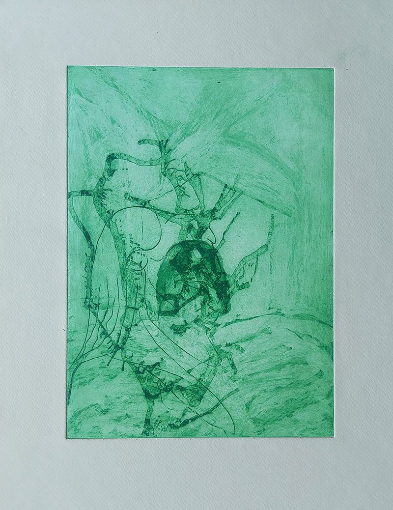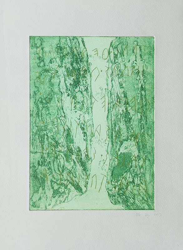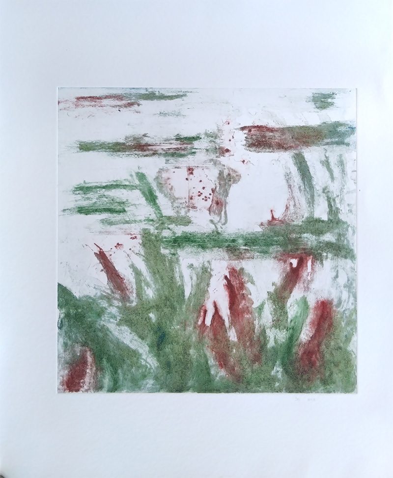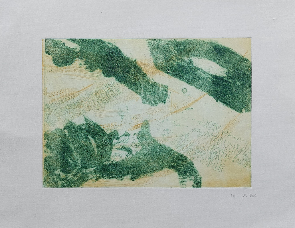 Mes gravures se déclinent sur deux supports;  sur cuivre (aquatinte) et sur plexiglas (carborundum).