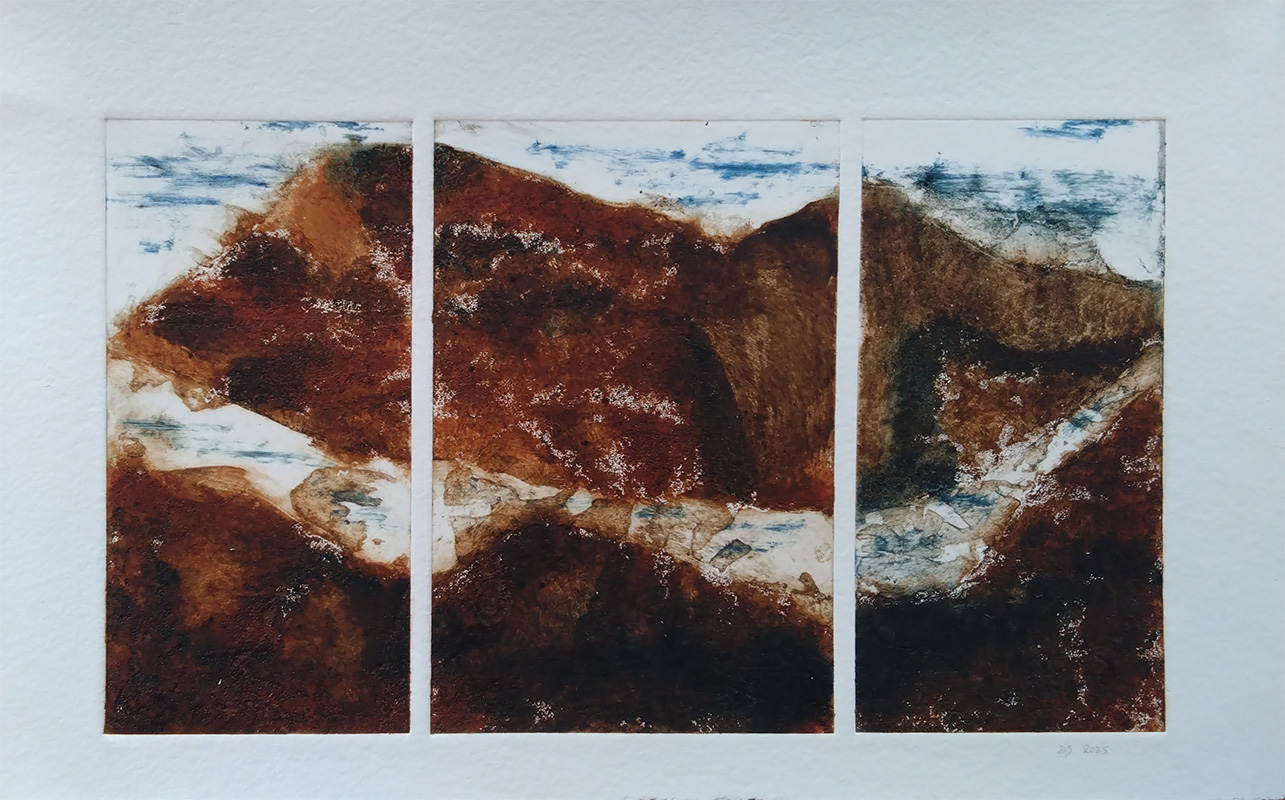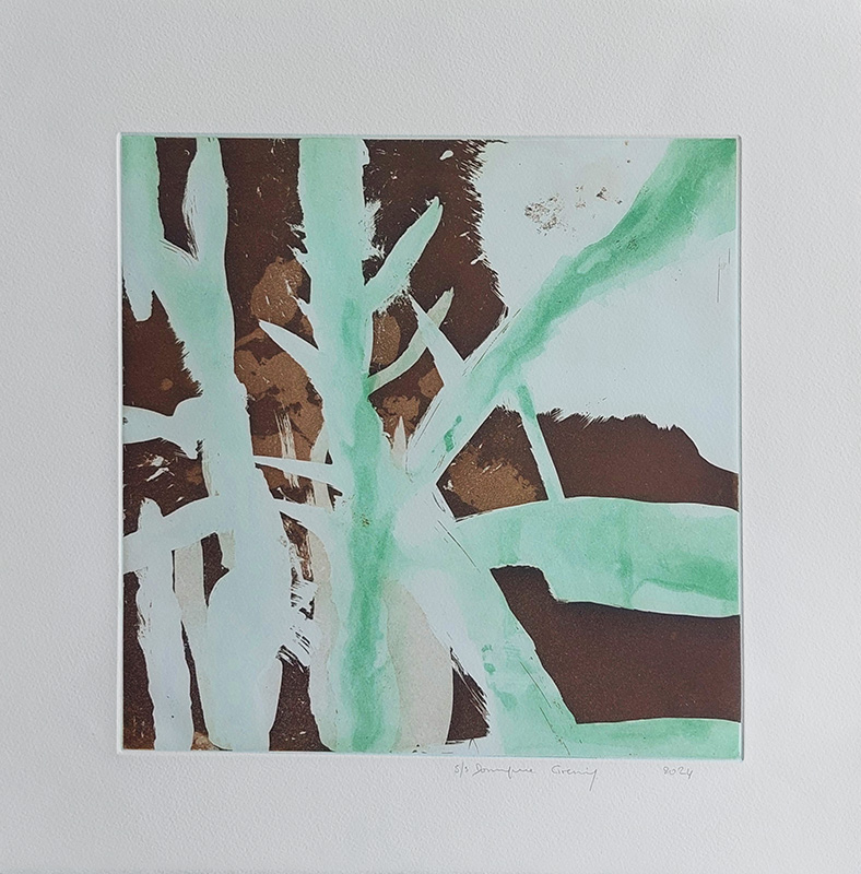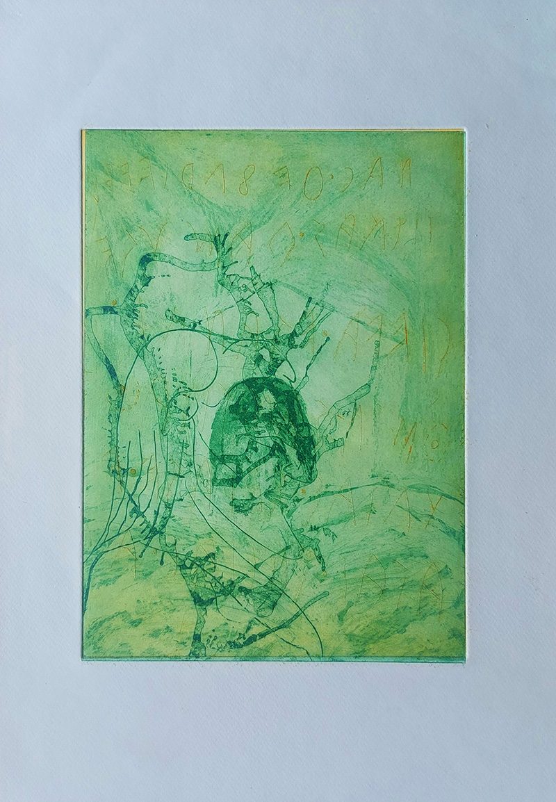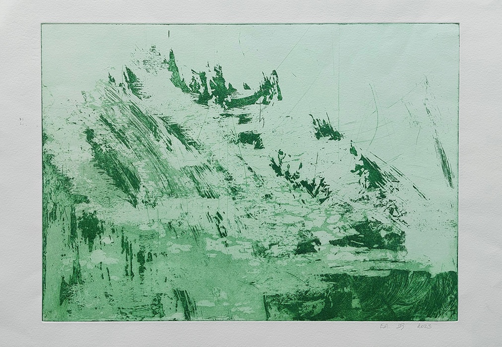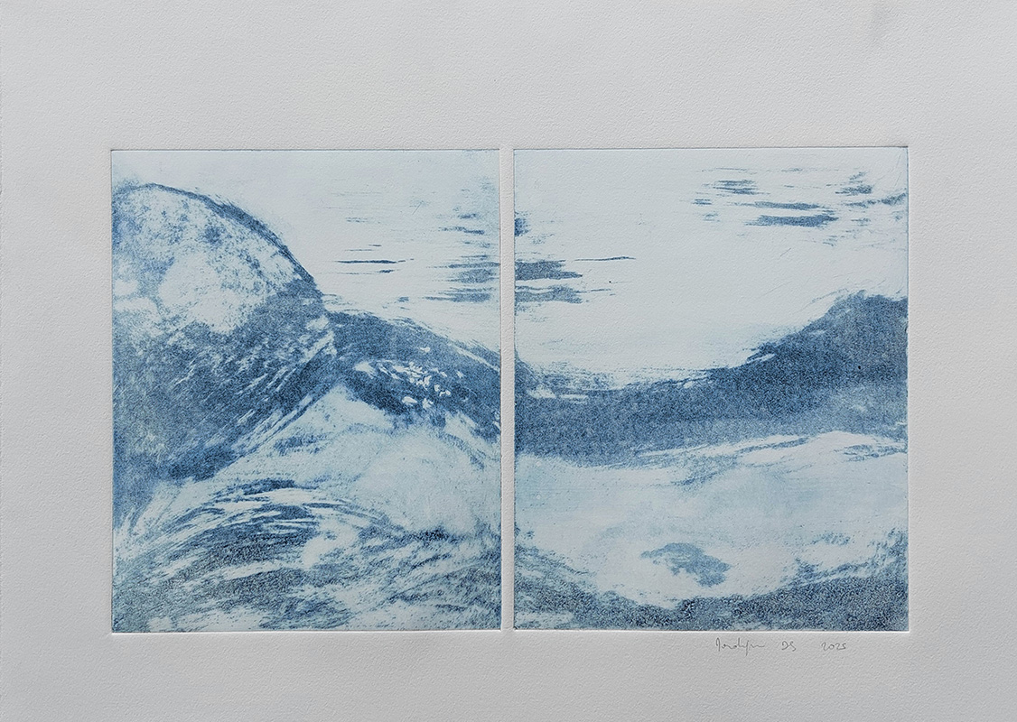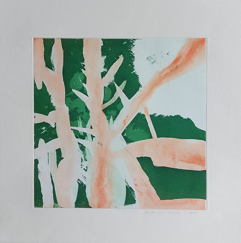 Mes gravures se déclinent sur deux supports;  sur cuivre (aquatinte) et sur plexiglas (carborundum).