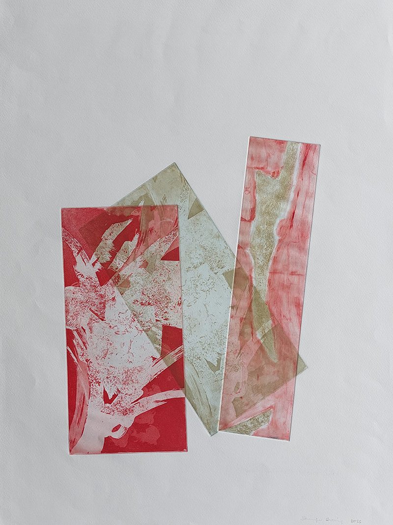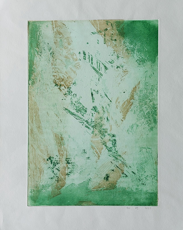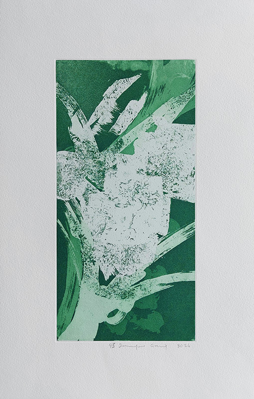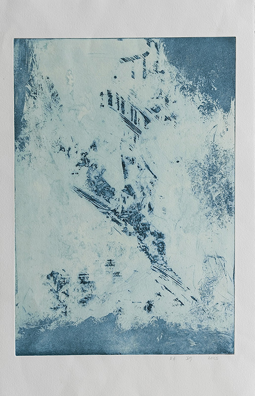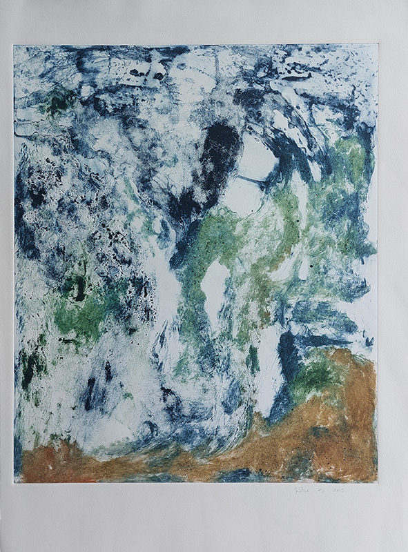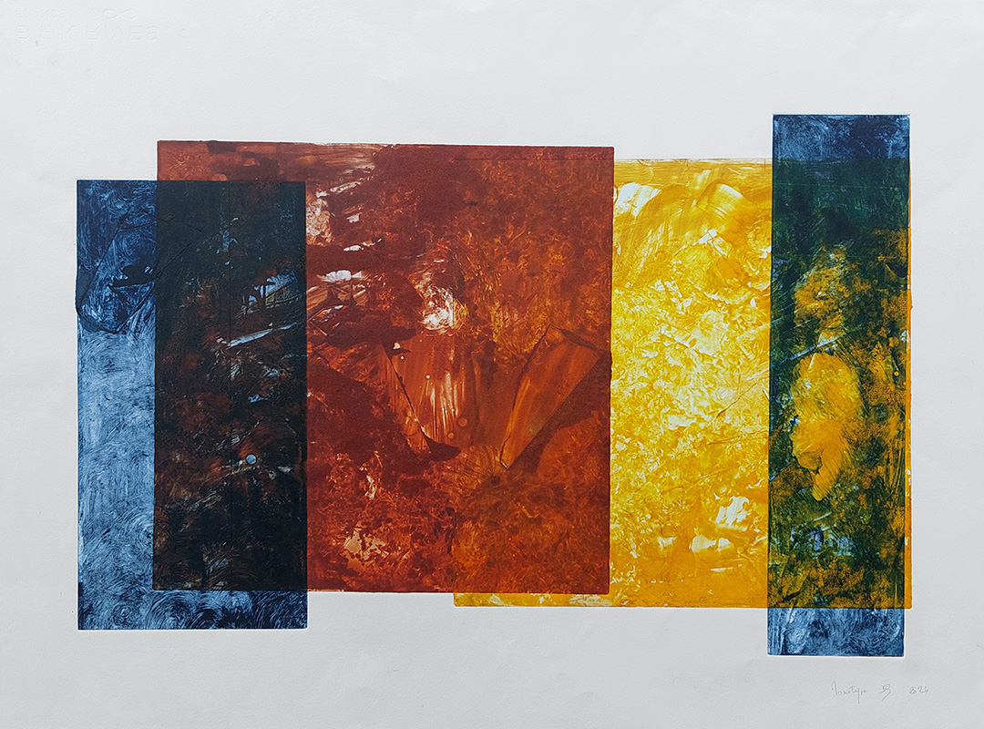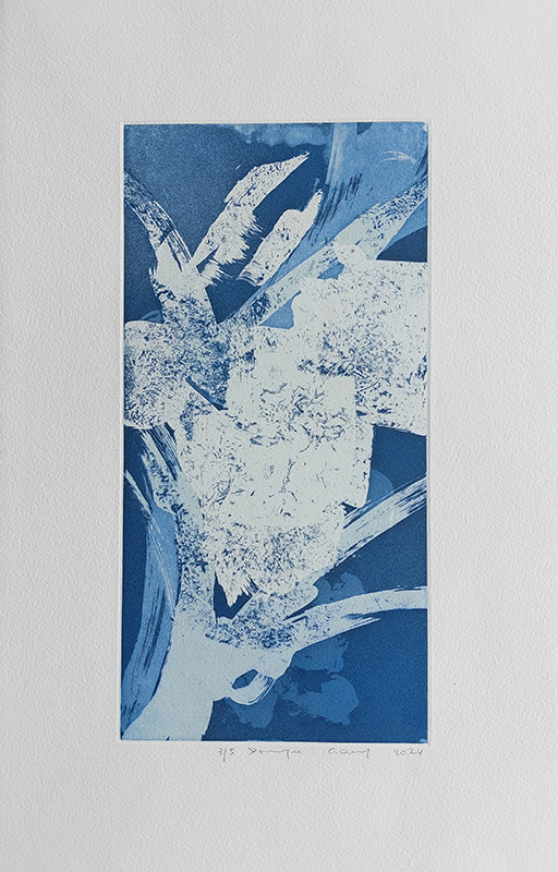 Les gravures au carborundum sur plexiglas permettent des formats plus grands et un travail de composition et de gestuelle proches de celui de la peinture.
